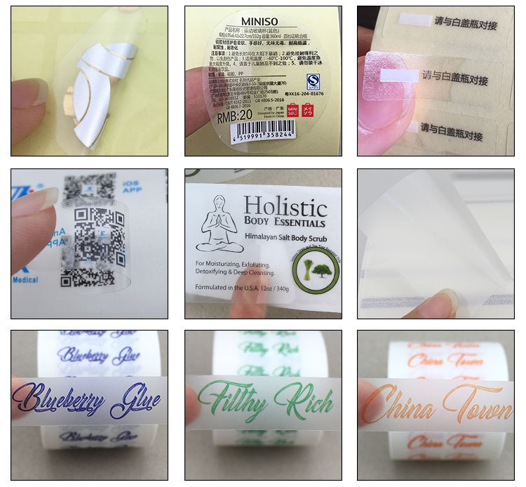 形状:长方形,不规则形状,圆形,椭圆形 适用范围:电器产品、化妆品、包装封口贴、产品标识、日化等 使用底纸:黄色离型纸,白色离型纸,白色格拉辛 材质:镜面不干胶,PVC不干胶,易碎纸,铜板不干胶,牛皮纸