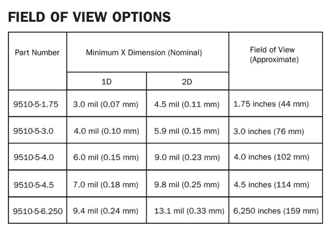 采用5百万像素的高分辨率相机,可以实现条码的高分辨率检测,可以在两千分之一英寸(.002"/.05 mm)的条码高度上进行读取和分析,远超ISO所要求的十次扫描最低平均值。