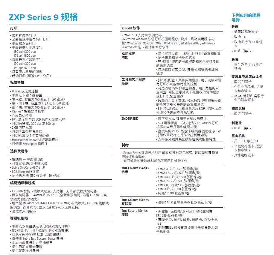 • ZXP 系列 9 证卡打印机